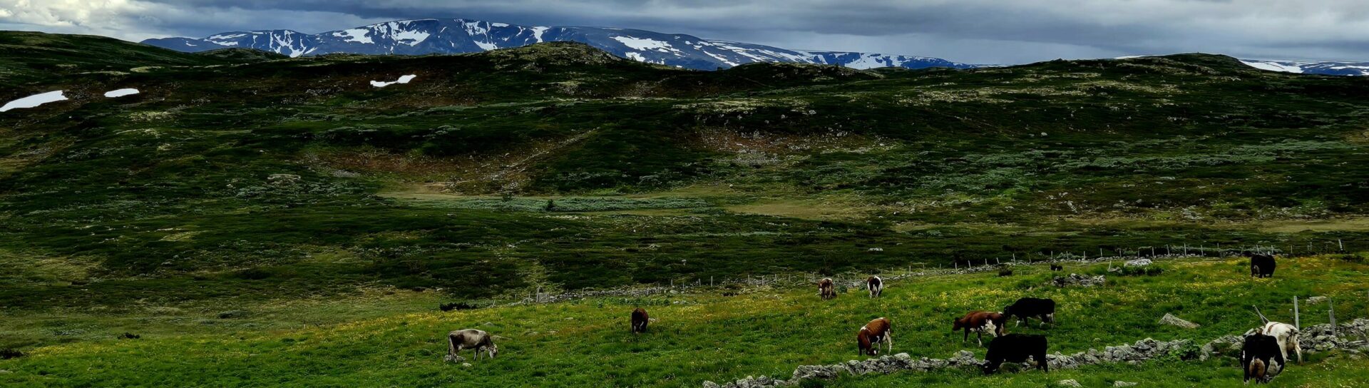 Og dyra? Dei høyrer til i fjellet. Når kyr, sau og geit beitar i utmarka, held dei kulturlandskapet ope. Dei held att attgroing, gjer plass til ville blomar, insekt og fuglar – og beitet gjev liv til eit mangfald som du ikkje får på flat jord eller i fjøset. Dette samspillet mellom natur og matproduksjon er noko av det mest berekraftige me har – og det skjer her, rett framfor oss, kvar einaste sommar.